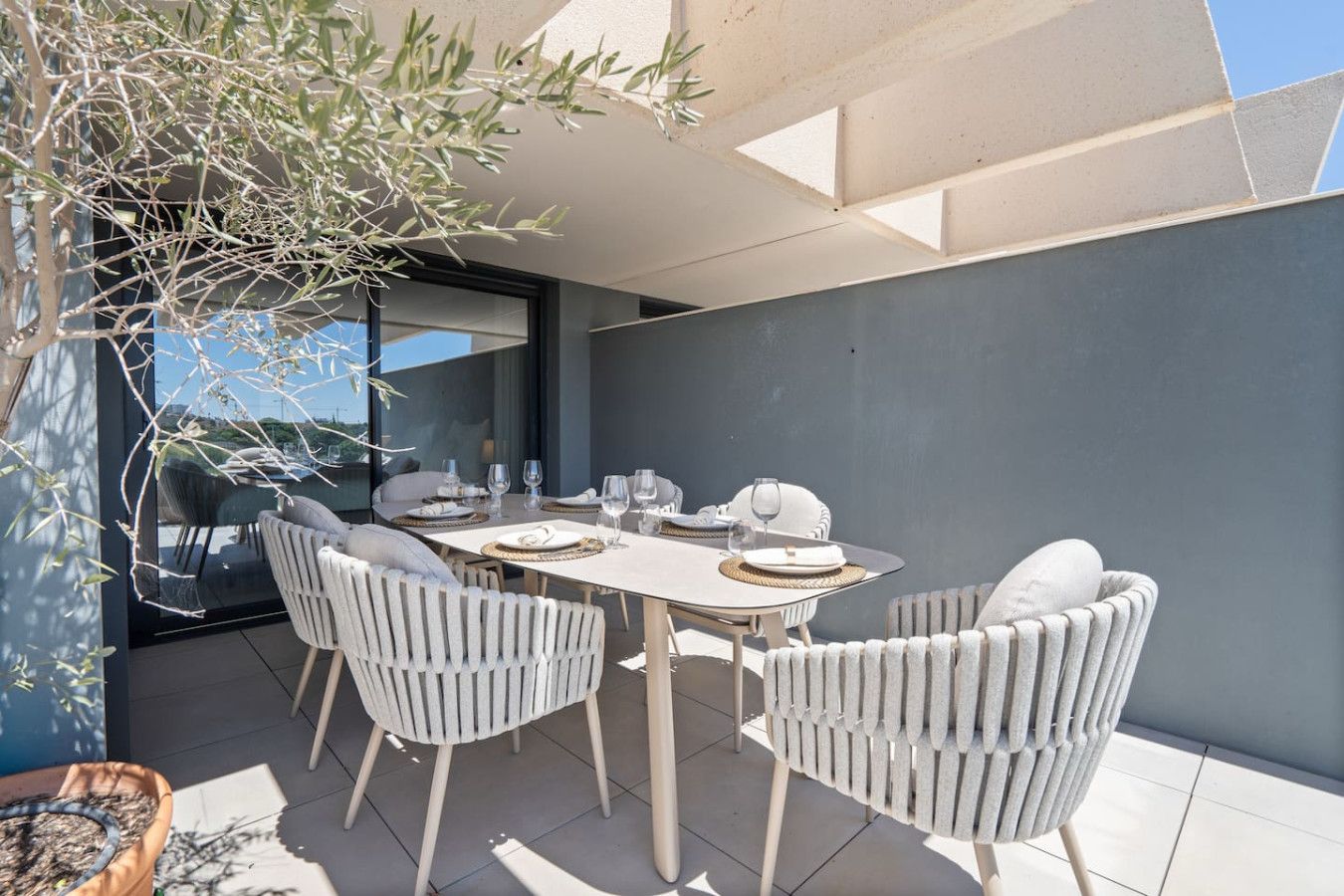 Stijlvolle eettafels en bijpassende stoelen speciaal ontworpen voor buitenmaaltijden, ideaal voor zowel intieme diners als gezellige etentjes met vrienden.